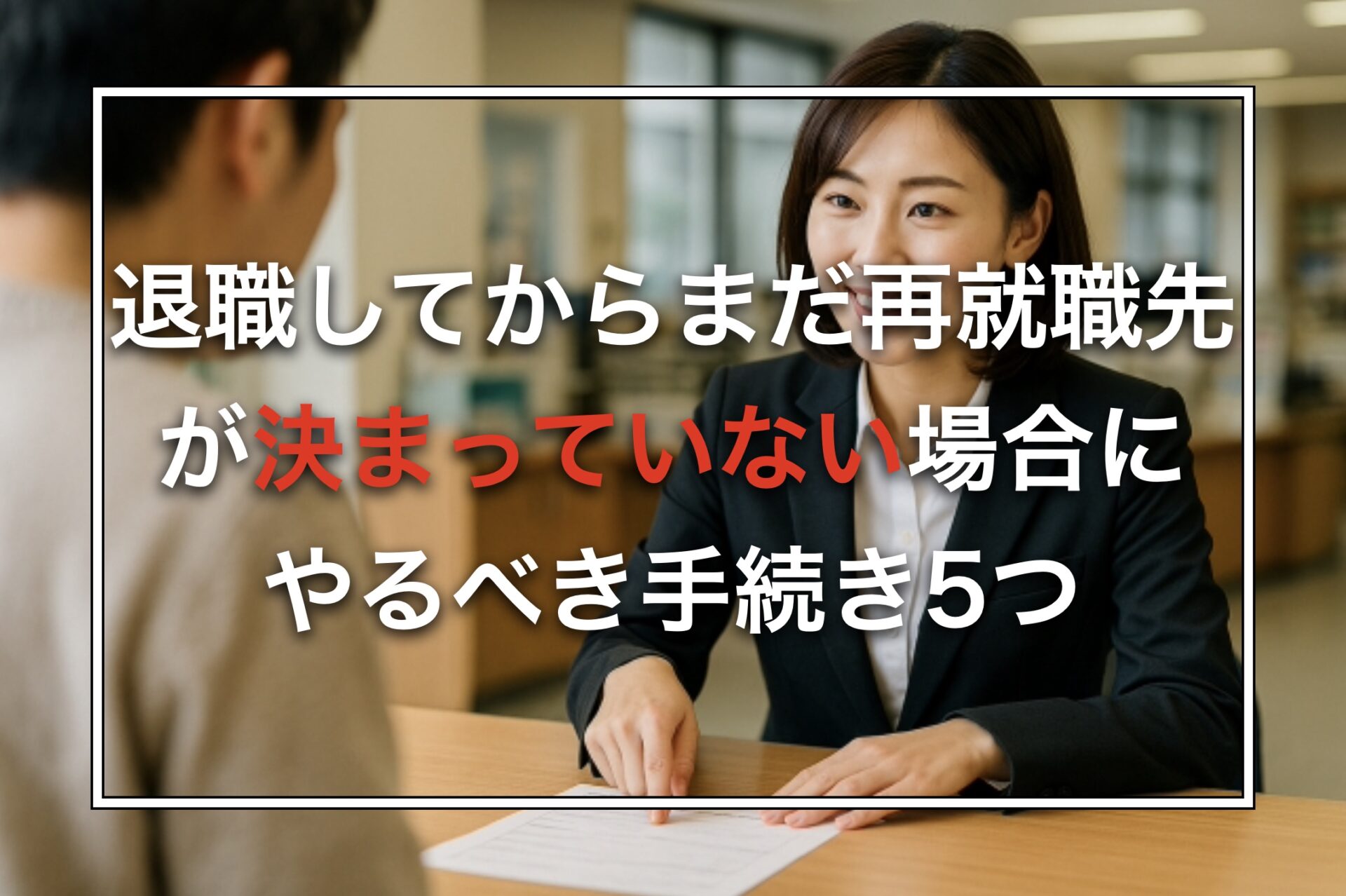 この記事は退職前に再就職先を探さなかった、あるいは再就職先が決まらなかった方へ向けてまとめています。もしも再就職が退職前に決定しているなら、こちらの記事へお進みください。